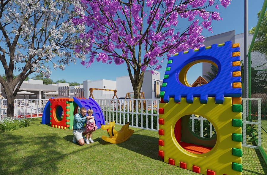Além das casas, o condomínio oferece uma área de lazer pensada para diferentes perfis e idades.